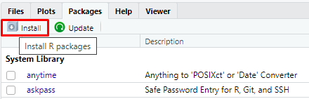 Встановити додаткові пакети можна за допомогою Install в розділі Packages: