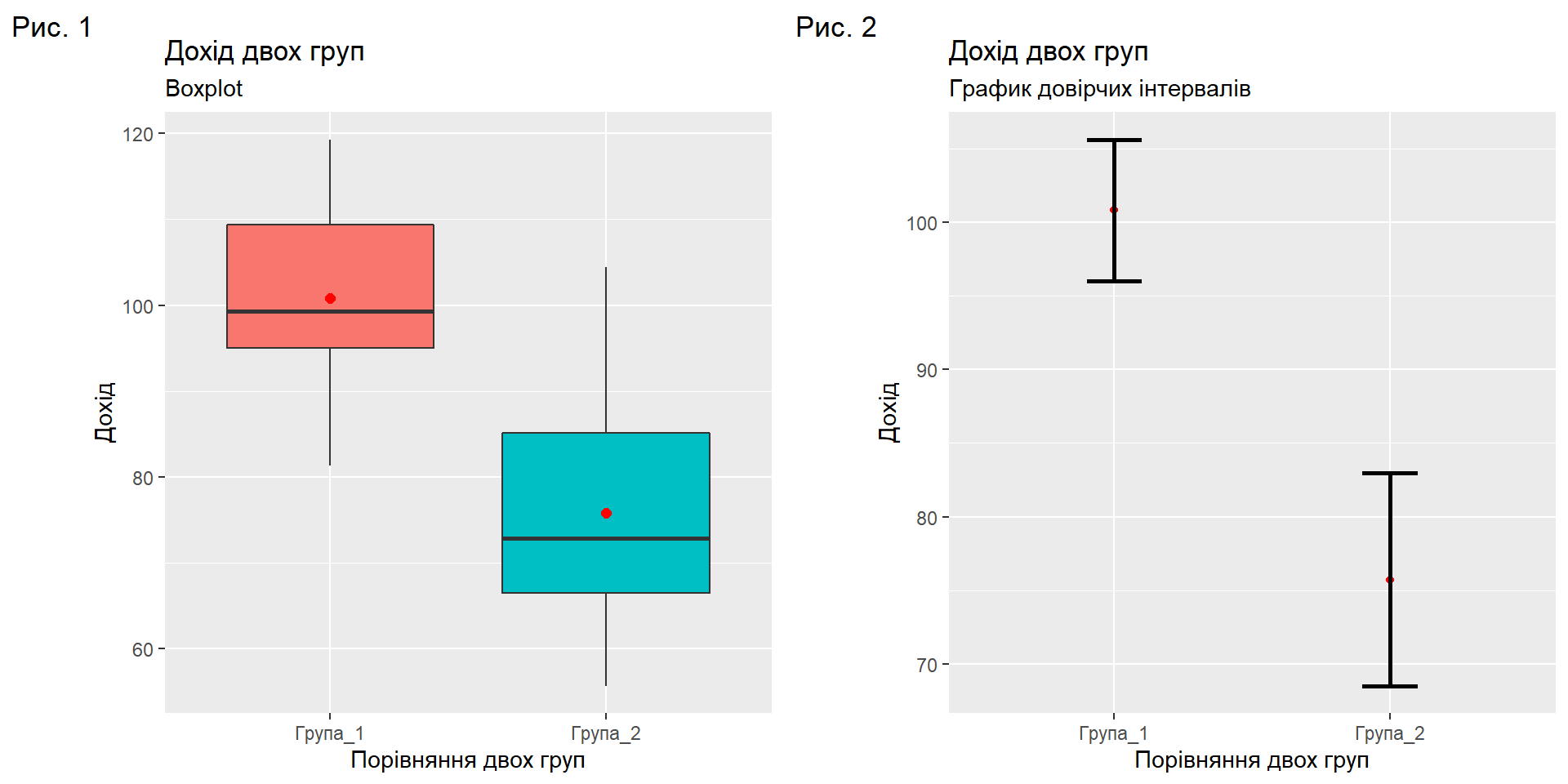 Розглянемо задачу: > При порівнянні доходу двох груп отримали наступні результати: