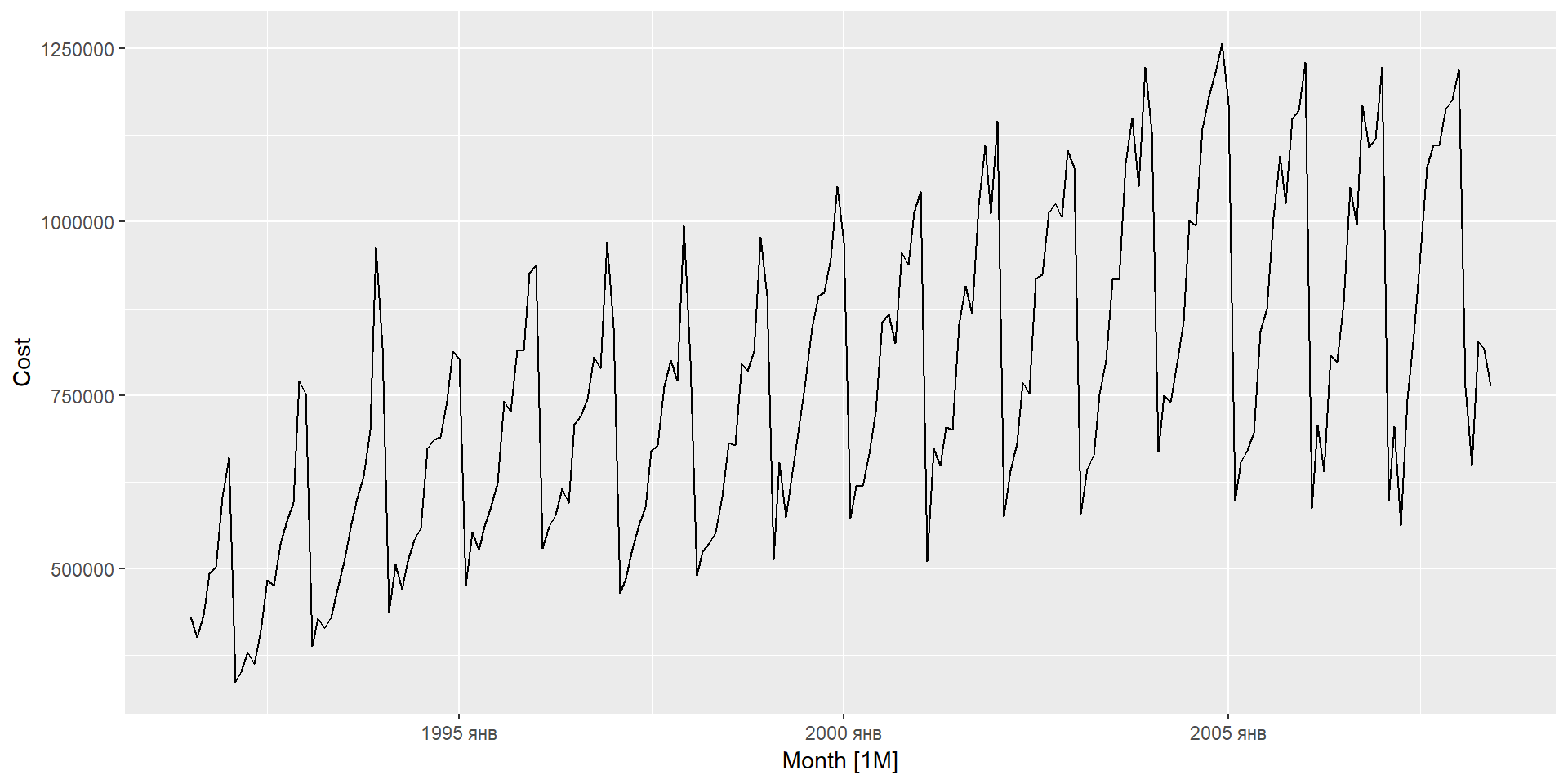 Мультиплікативно? \[y_t = \ell_{t-1}b_{t-1}s_{t-m}(1 + \varepsilon_t)\]