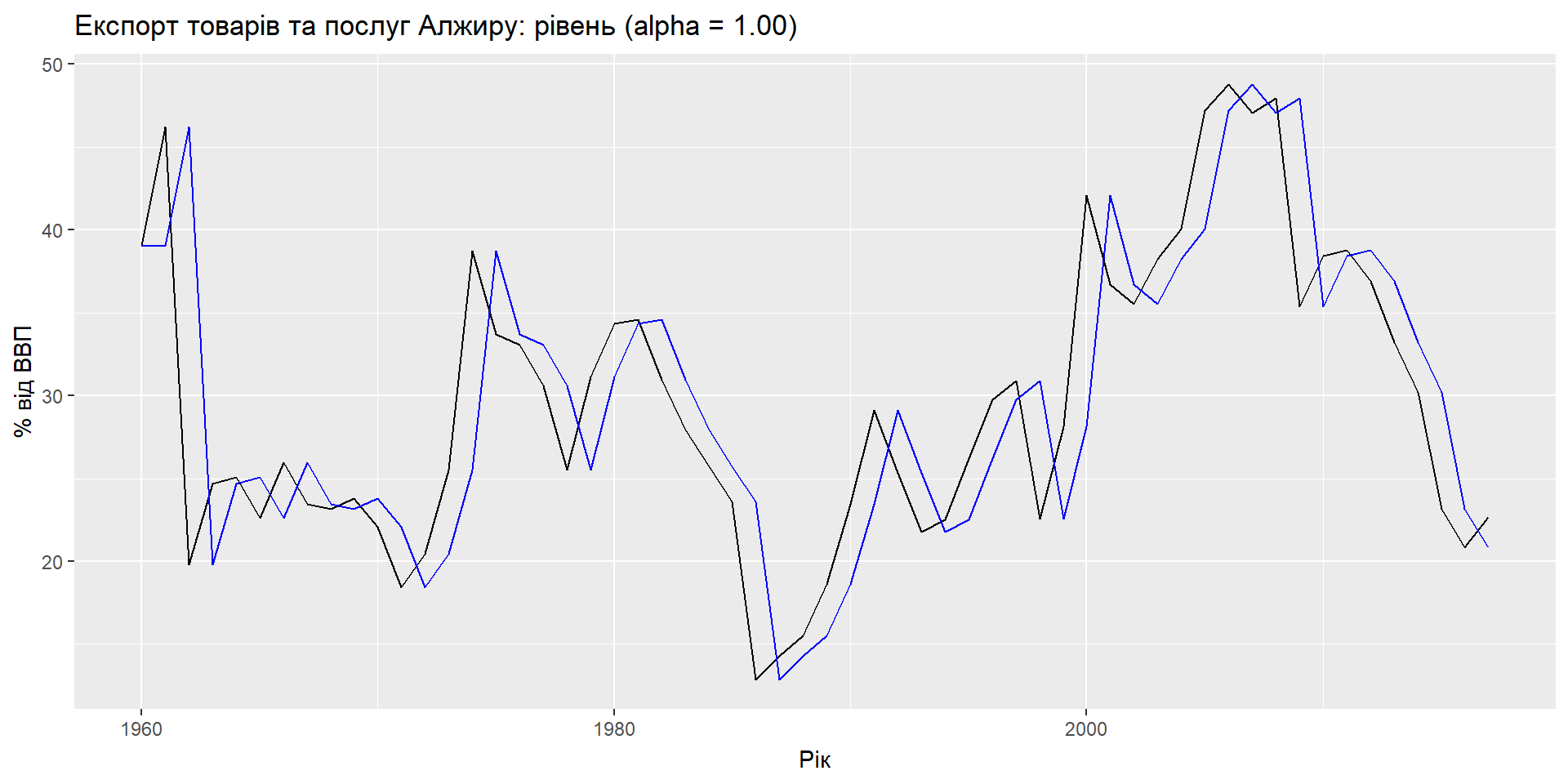 Формула згладжування: \(\ell_{t} = \alpha y_{t} + (1 - \alpha)\ell_{t-1}\)
