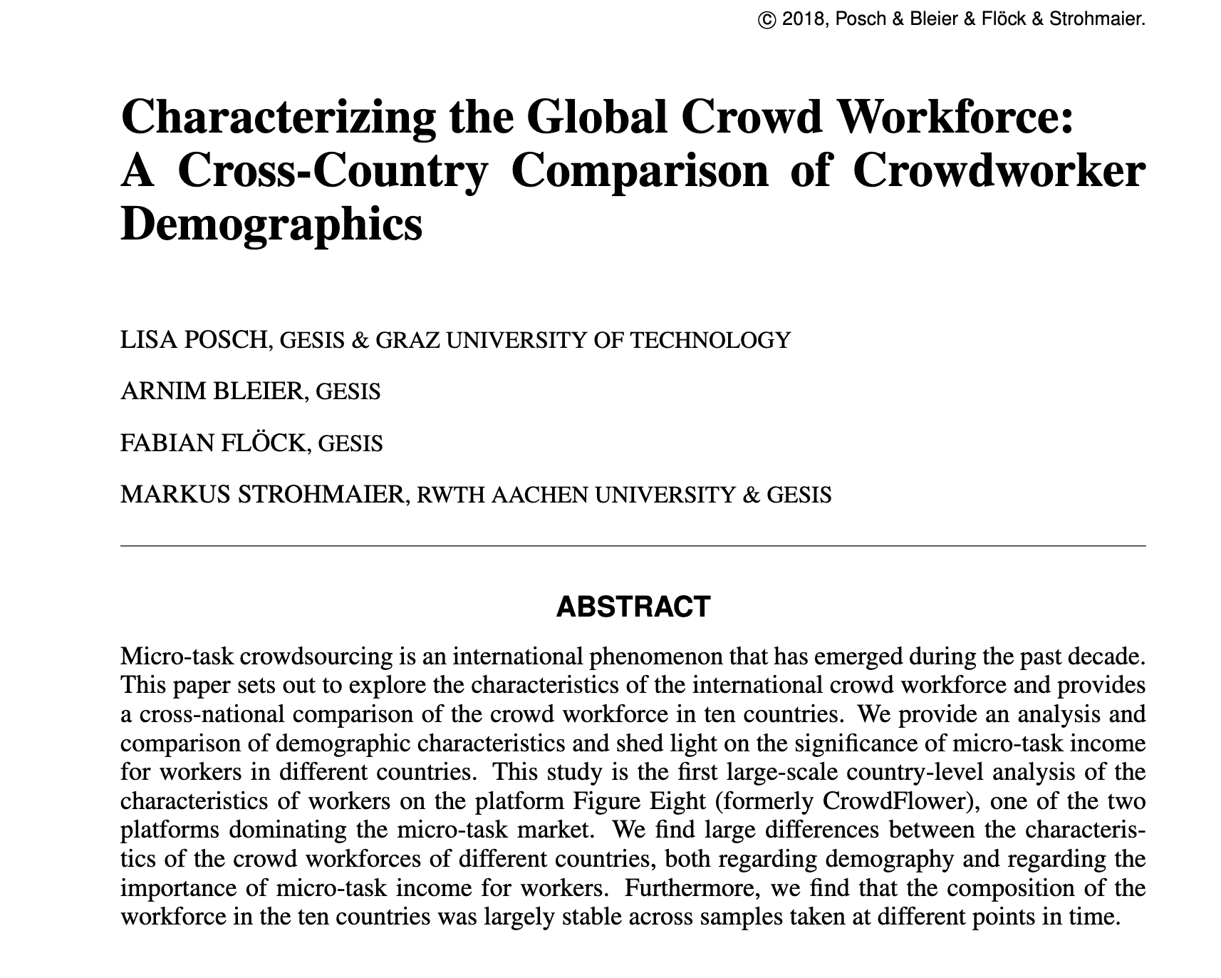 “Characterizing the Global Crowd Workforce: A Cross-Country Comparison of Crowdworker Demographics.” https://doi.org/10.48550/ARXIV.1812.05948.