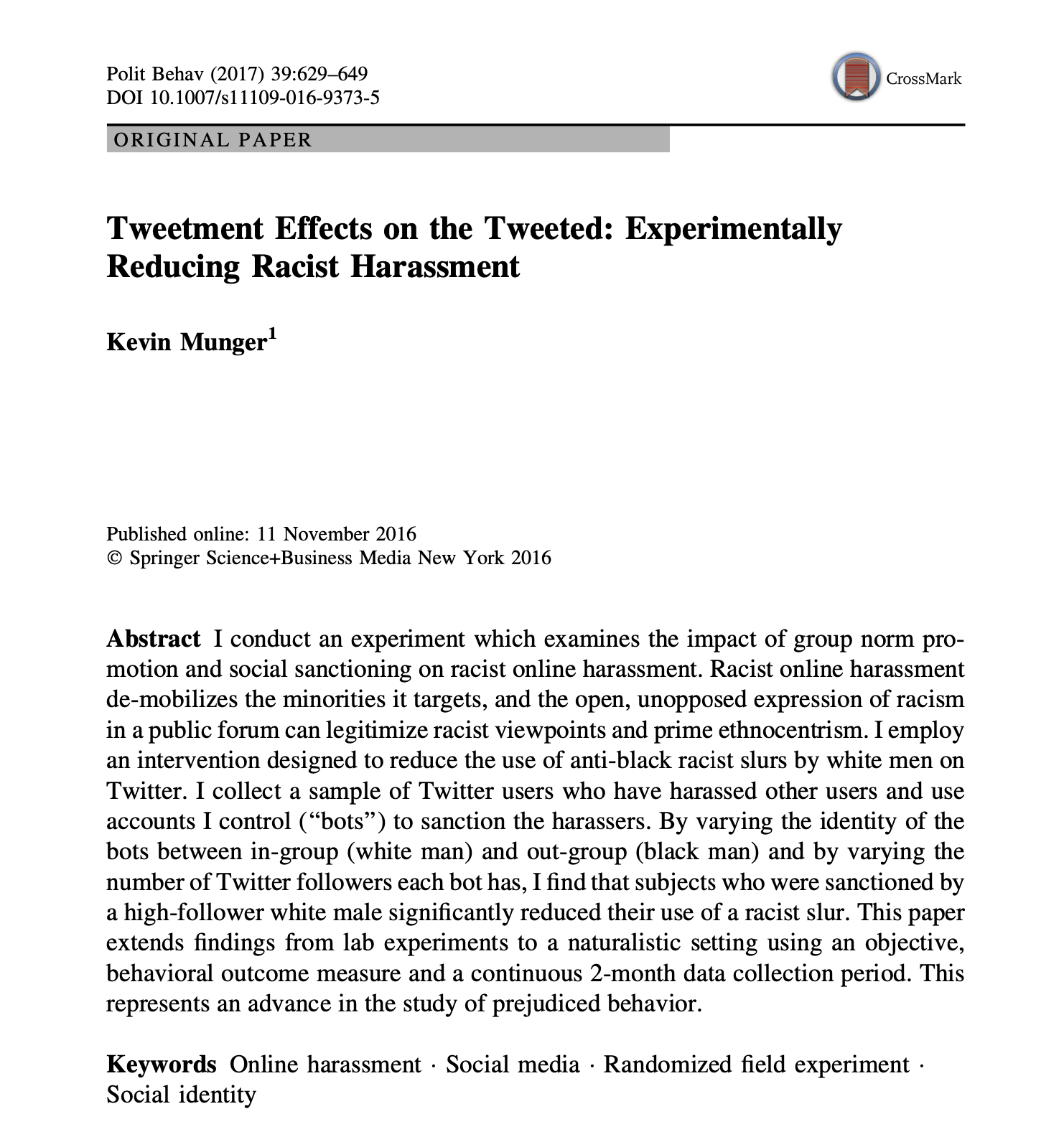 “Tweetment Effects on the Tweeted: Experimentally Reducing Racist Harassment.” Political Behavior 39 (3): 629–49.