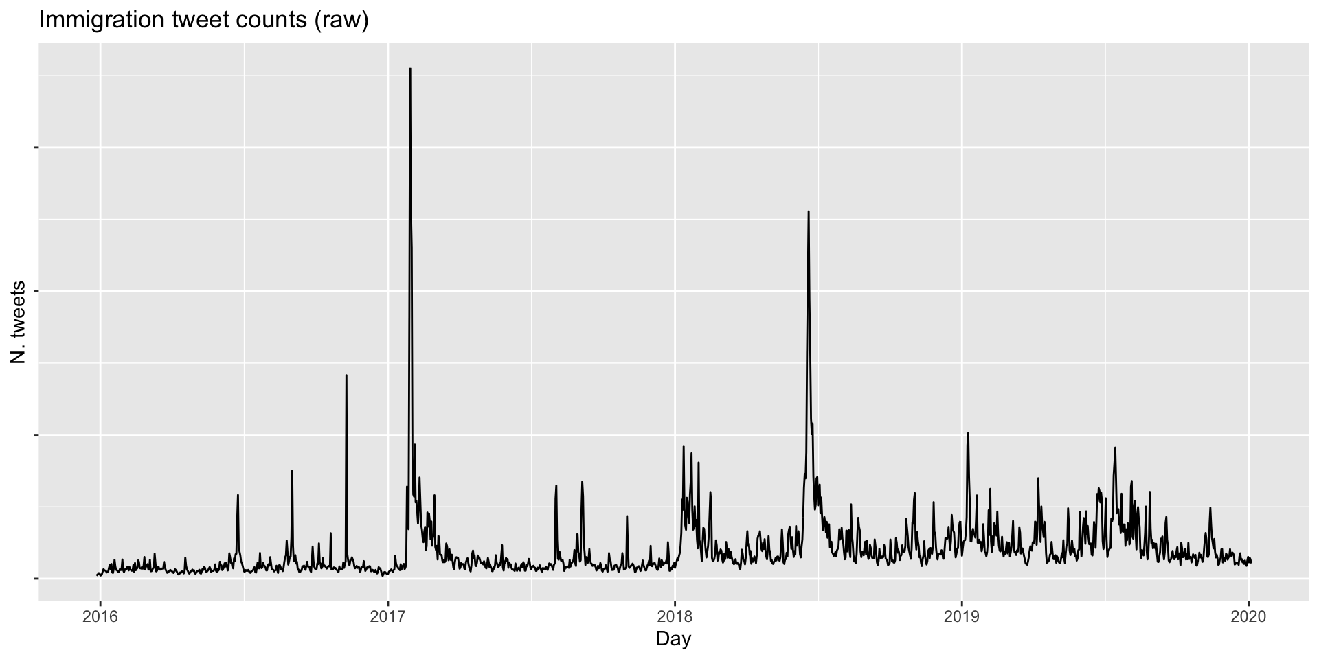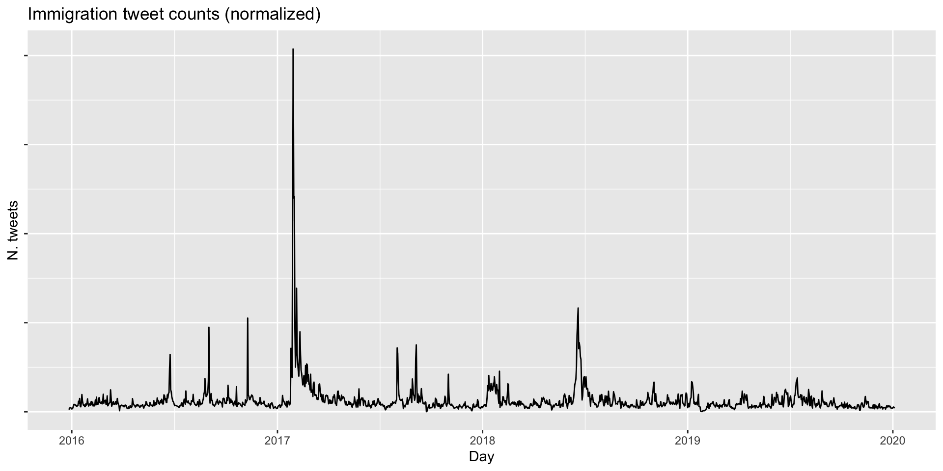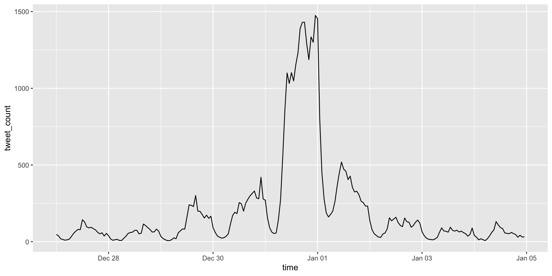head(tweetcounts$normalized_count)[1] 0.8641441 1.4070588 1.8567669 2.3317991 1.1134310 1.0938708