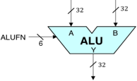 Note that by specifying an appropriate value for the 6-bit FN input, the ALU can perform a variety of arithmetic operations, comparisons, shifts, and bitwise Boolean combinations required by our Beta processor.