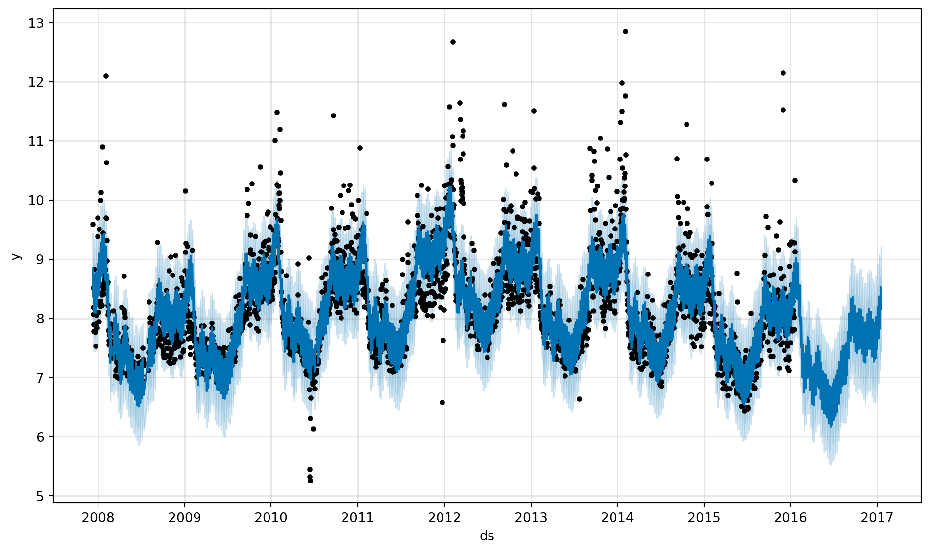 Prophet includes a prophet.diagnostics.cross_validation function method, which uses simulated historical forecasts to provide some idea of a modelβs quality