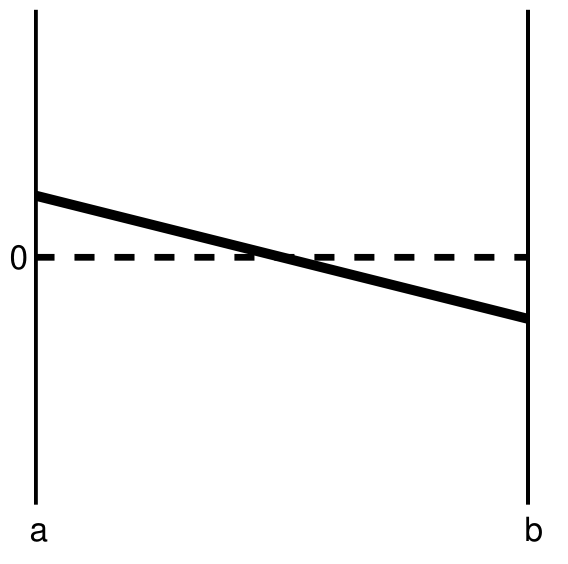 In this case, \(f(a) > 0\), \(f(b) < 0\)