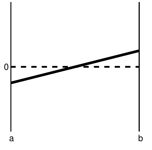 In this case, \(f(a) < 0\), \(f(b) > 0\)