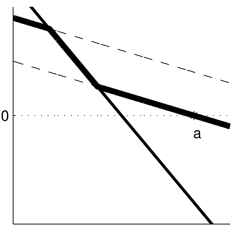 endThe kinks in the equilibrium paths correspond to transitions between regimes where different capacity constraints become binding