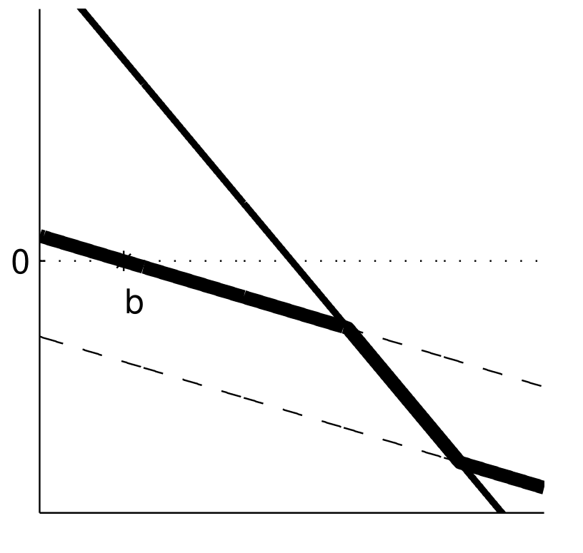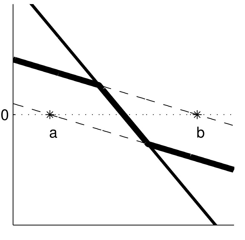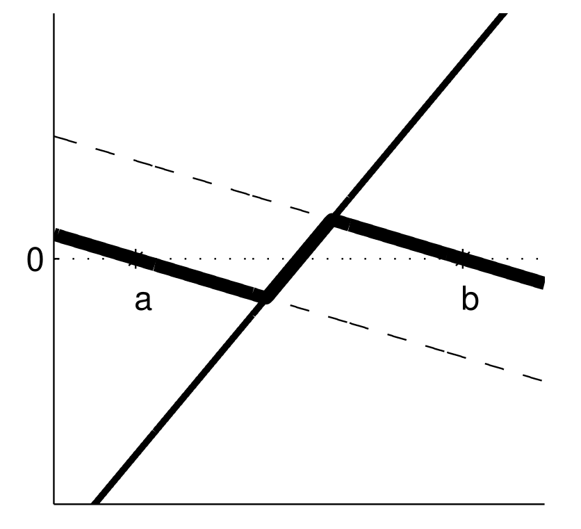 \(\hat{f}(x) = min(max(f(x),a-x),b-x) = 0\)