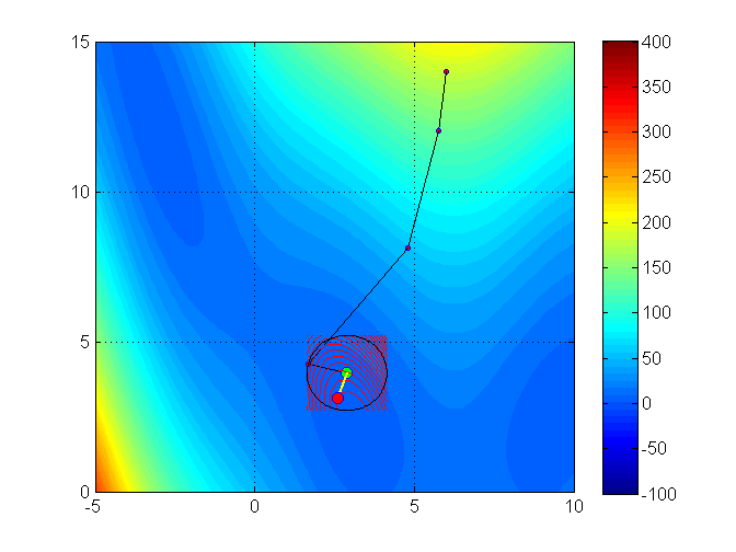 Let’s see an illustration of the trust region method with the Branin function (it has 3 global minimizers)3