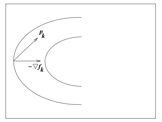 where \theta is the angle between p and \nabla\,f_k