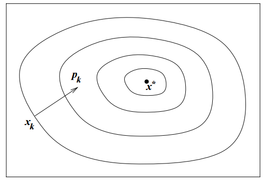 “Approximately” solve this problem to figure out the step length \alpha \min_{\alpha > 0} f(x_k + \alpha p_k)