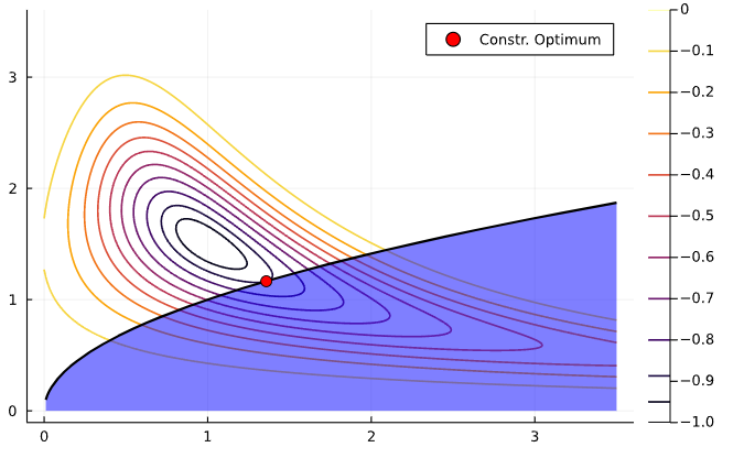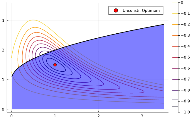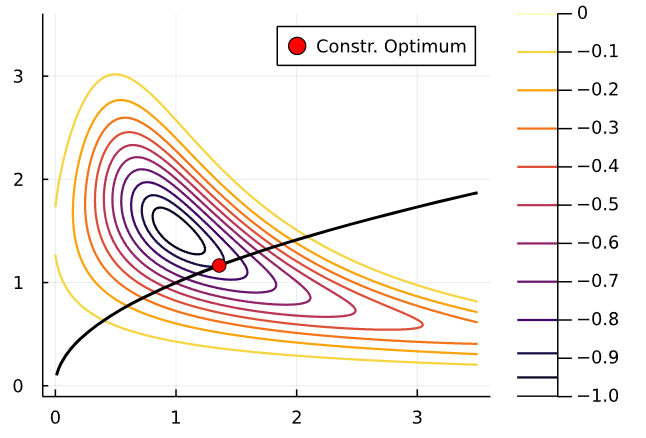 Let’s see a an illustration with a single constraint. Consider the optimization problem