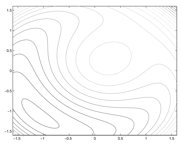 \min_x -exp\left(-(x_1 x_2 - 1.5)^2 - (x_2 - 1.5)^2 \right)
