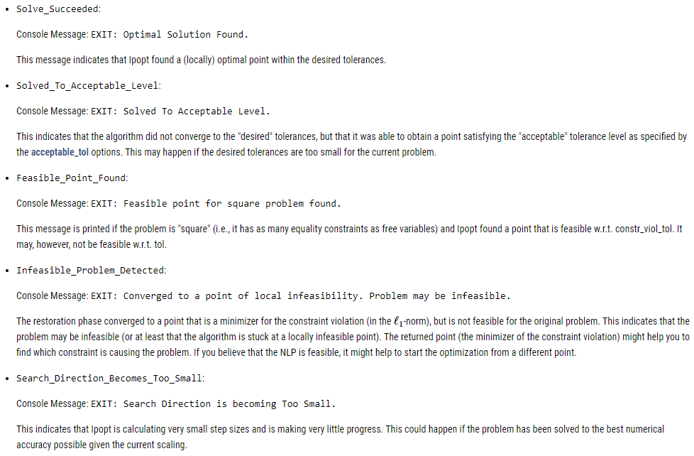Return codes (or exit flags) tell you why the solver stopped