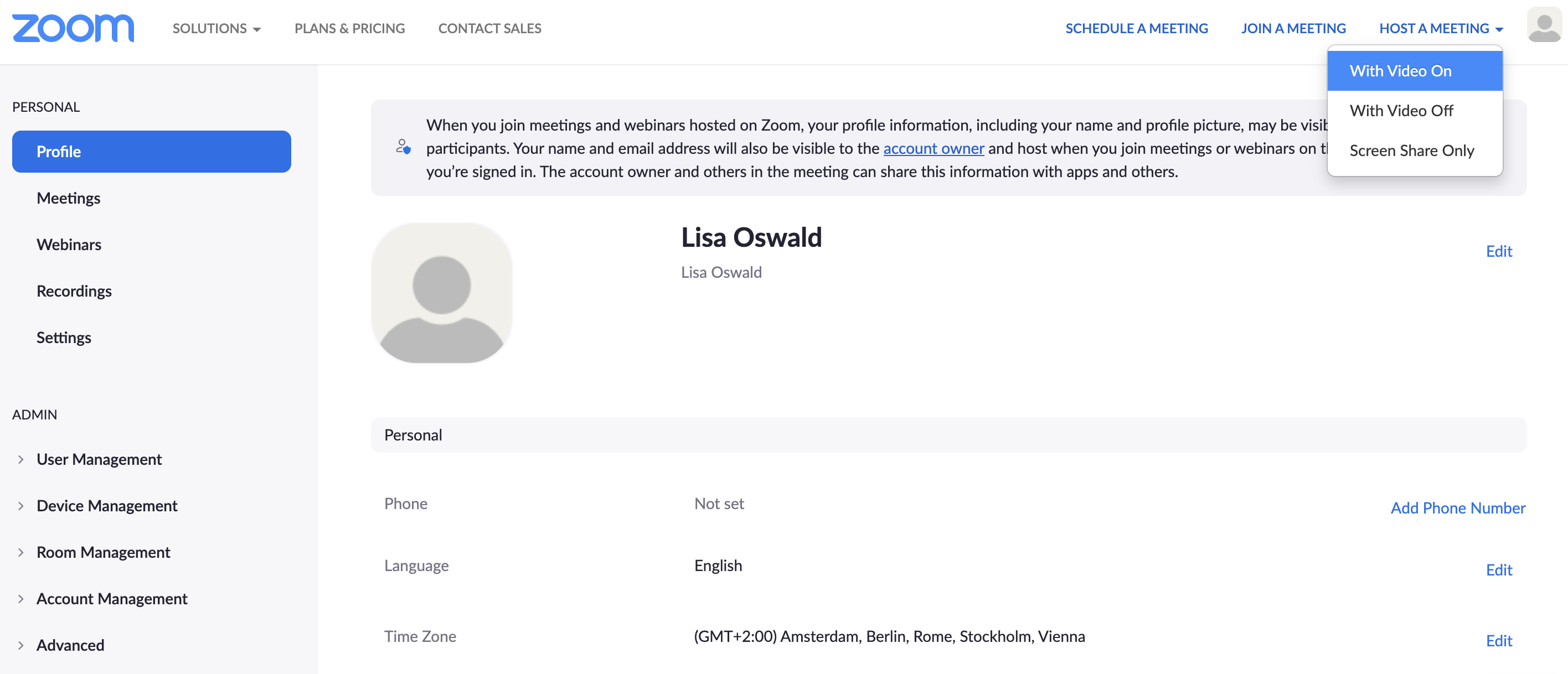 Step 1 Host a meeting by yourself and have the video turned on (it should be focused on you):