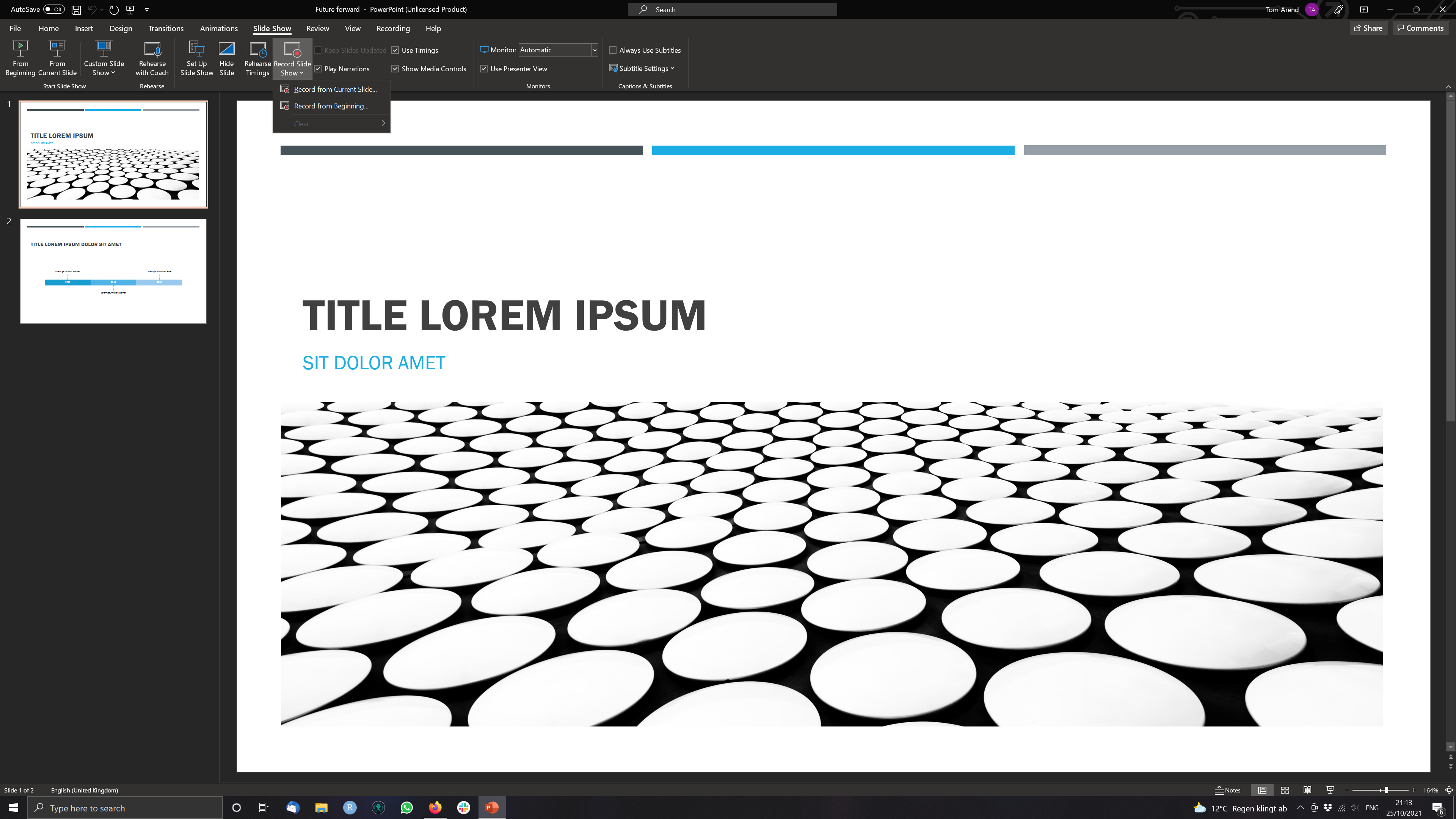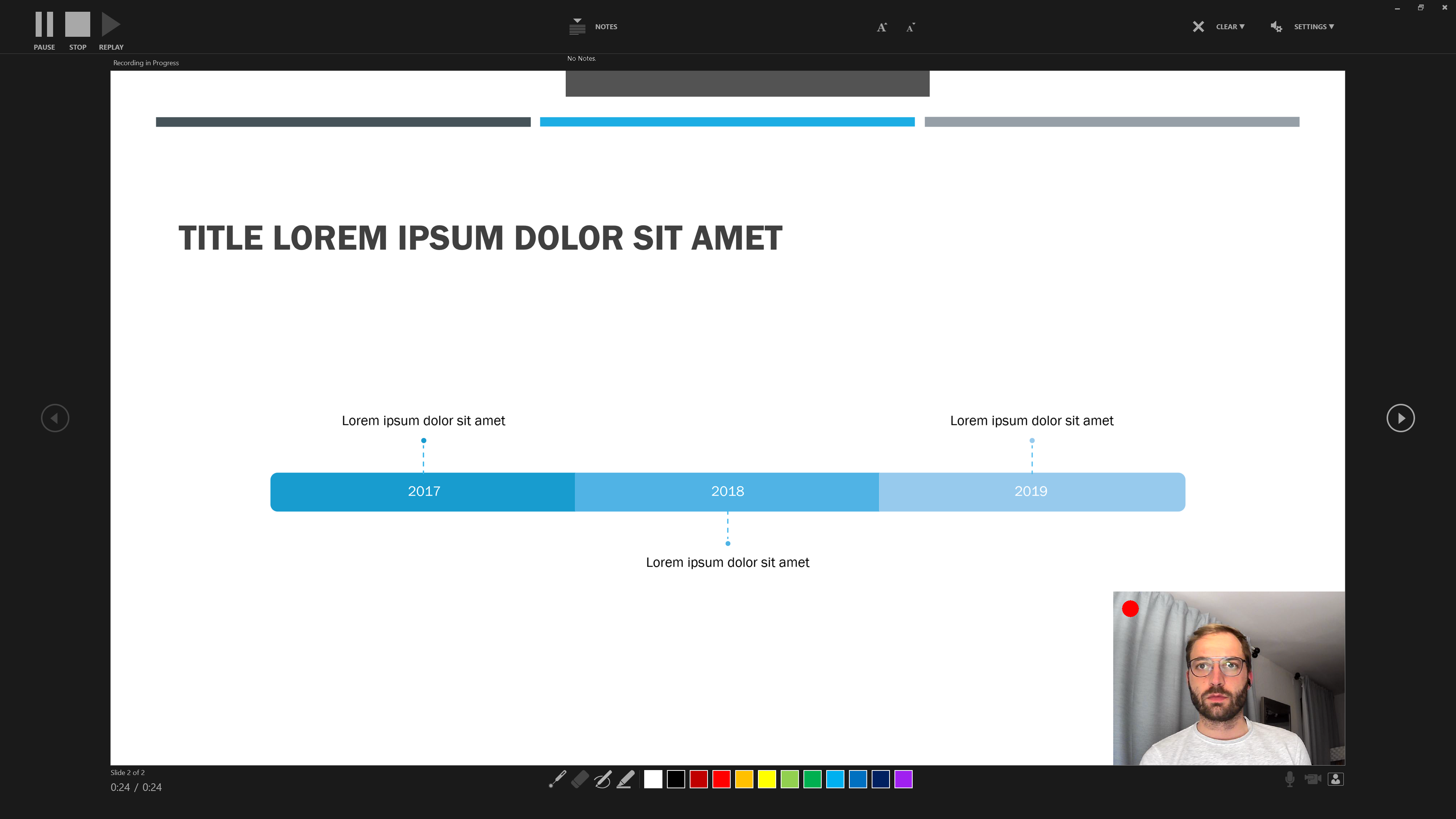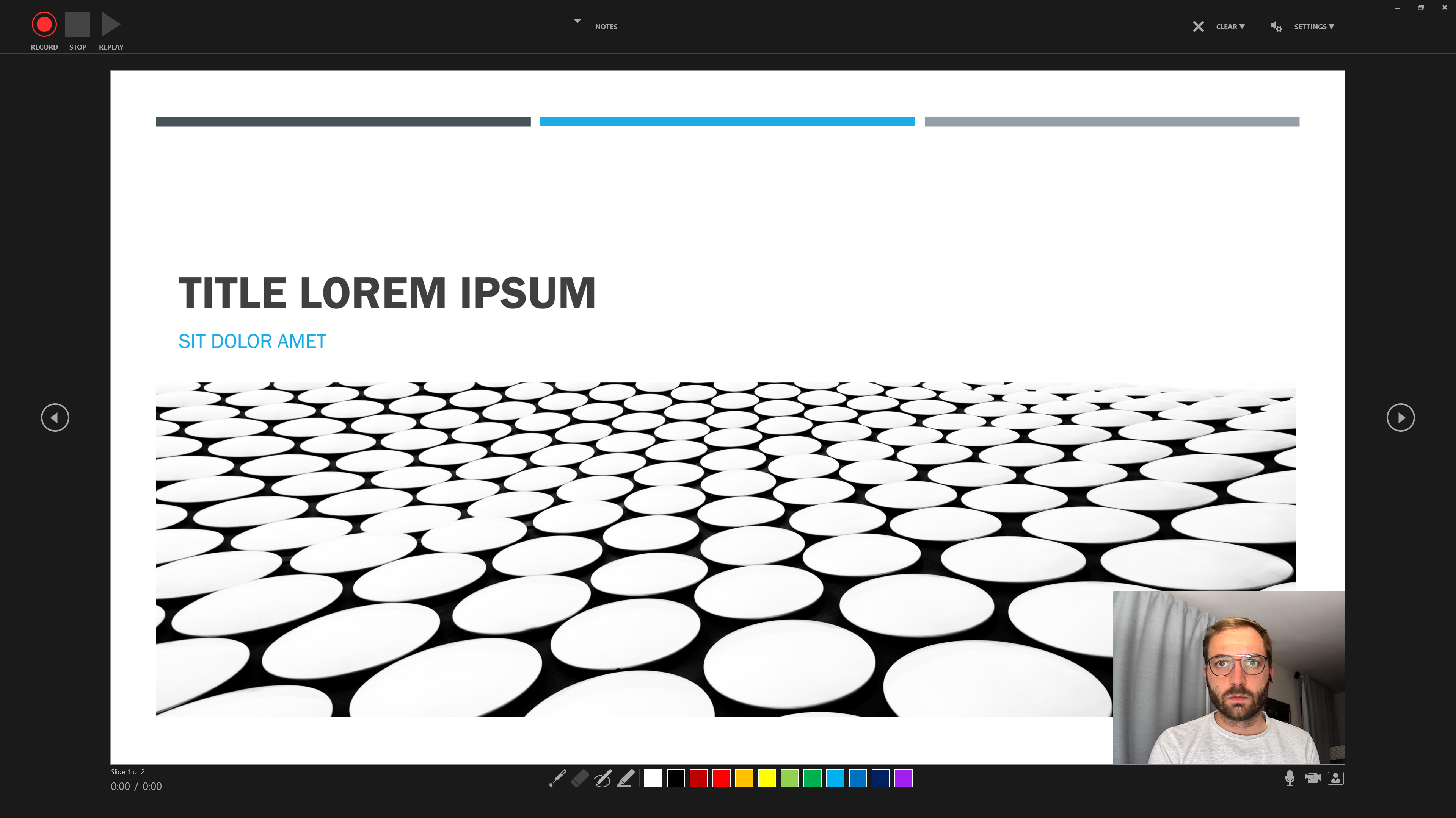For this to work you need to have an official MS Powerpoint licence and a finished presentation. In order to record yourself and the presentation follow these steps: