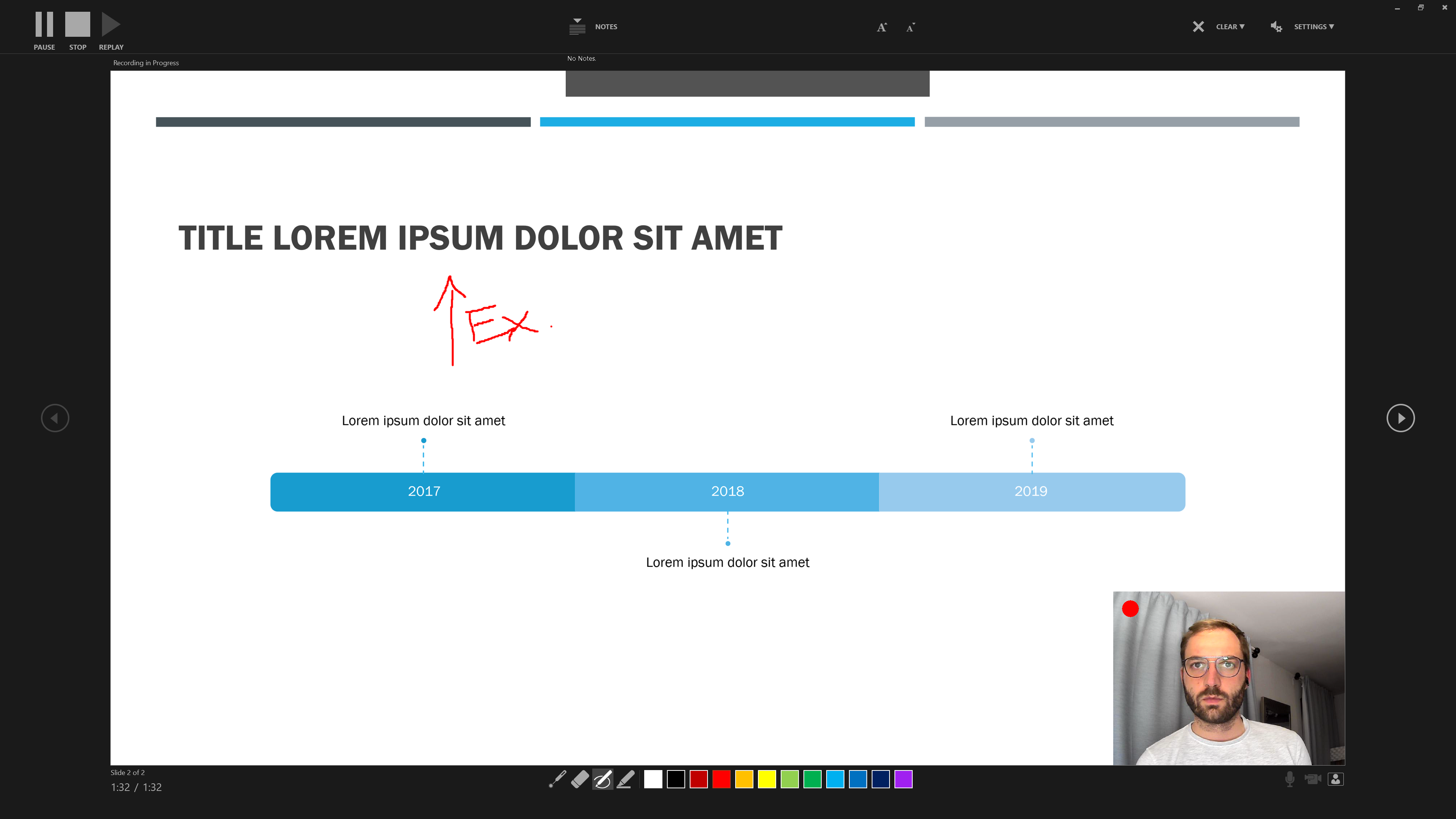 … and the colours and pens at the bottom to draw and highlight elements of a slide.