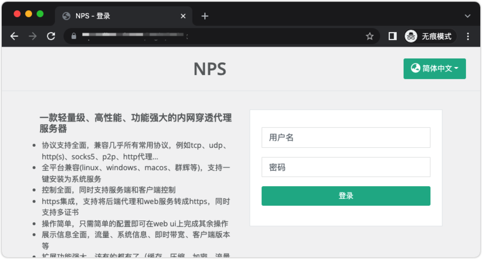 nps 一款轻量级、高性能、功能强大的内网穿透代理服务器。支持tcp、udp、socks5、http等几乎所有流量转发,可用来访问内网网站、本地支付接口调试、ssh访问、远程桌面,内网dns解析、内网socks5代理等