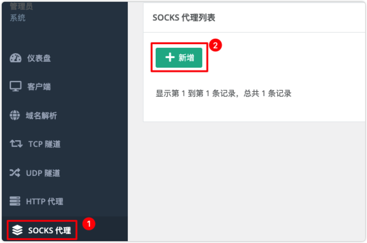 通过 Socks5 代理可以访问内网任意服务,不必建立一个个的内网穿透隧道。在设置代理之前确保 客户端 建立好,并且 链接 状态为 在线。