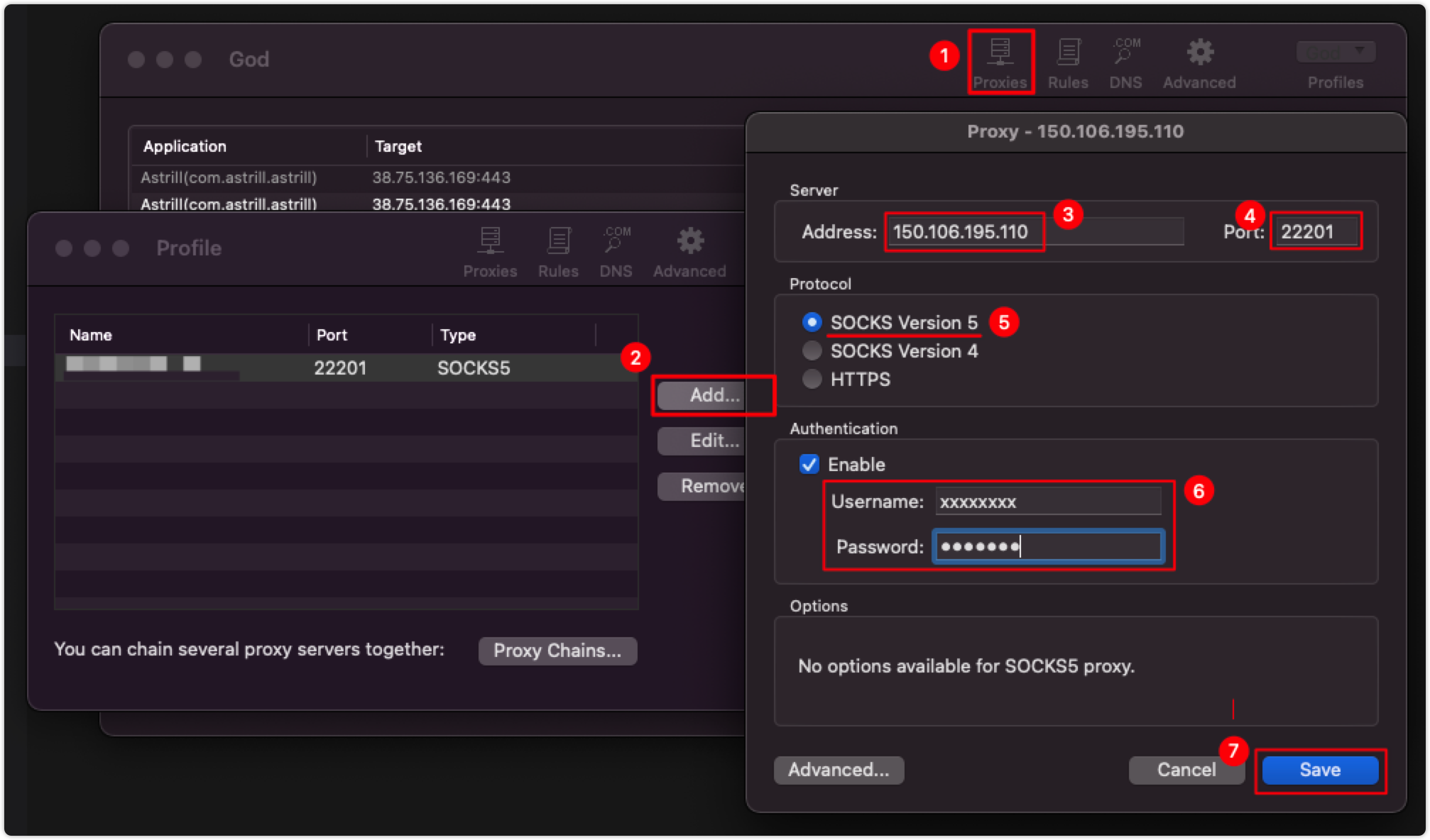在建立好 Socks5 代理之后,需要使用 proxifier 配置代理访问公司内网