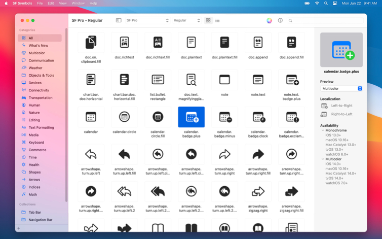 通过 Apple 提供的应用 SF Symbols 2 查看 SF Symbols 所有的图标名称。