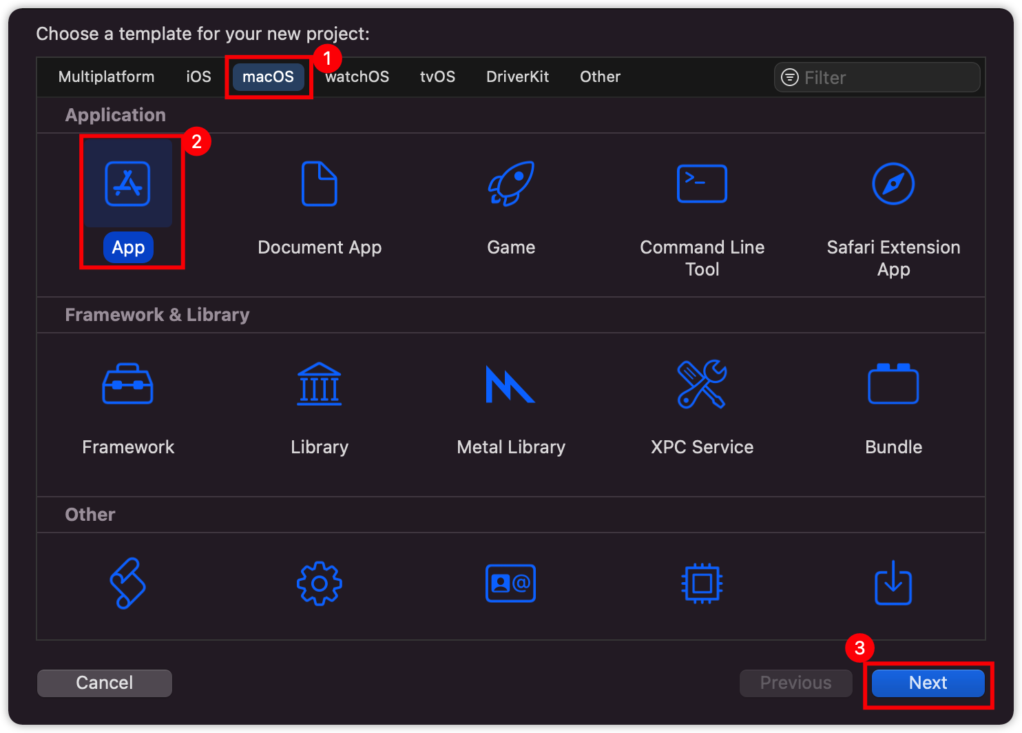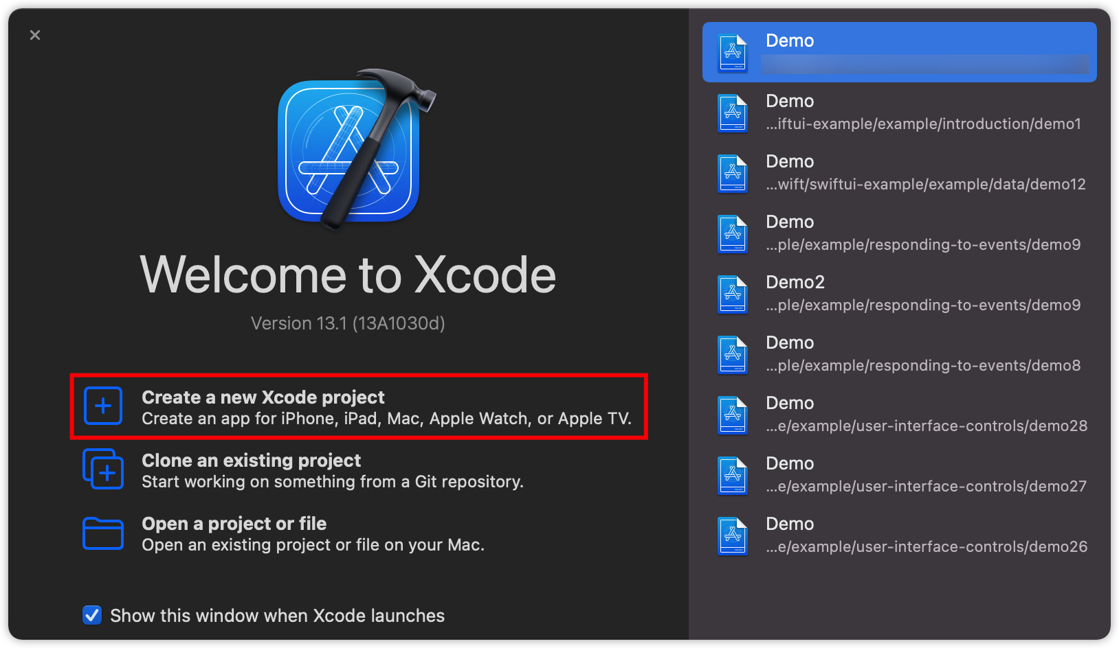 请在 Xcode 中创建一个名为 Demo 的新 macOS 项目,选择 应用 模板。
