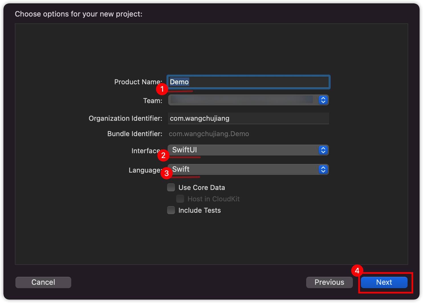 您还应该为界面选择 SwiftUI ,为生命周期选择 SwiftUI 应用。
