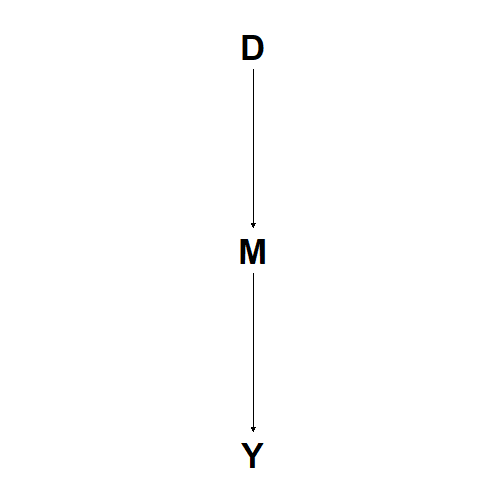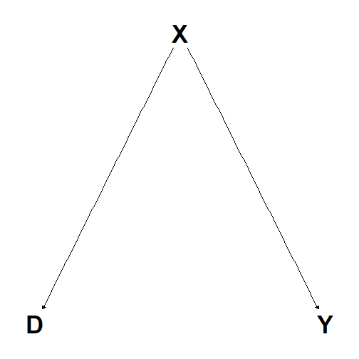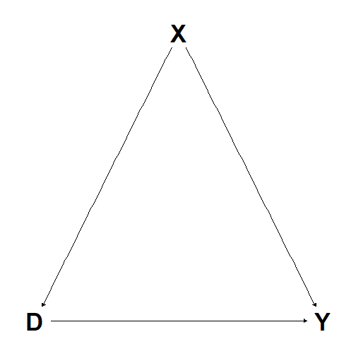 class: center, middle, inverse, title-slide .title[ # 08 - Causal Inference ] .subtitle[ ## ml4econ, HUJI 2023 ] .author[ ### Itamar Caspi ] .date[ ### May 28, 2023 (updated: 2023-05-28) ] --- # Reproducing This Presentation Use the [pacman](https://cran.r-project.org/web/packages/pacman/vignettes/Introduction_to_pacman.html) package to install and load necessary packages. ```r if (!require("pacman")) install.packages("pacman") pacman::p_load( tidyverse, # for data wrangling and visualization tidymodels, # for modeling haven, # for reading dta files here, # for referencing folders dagitty, # for generating DAGs ggdag, # for drawing DAGs knitr # for printing html tables ) ``` --- # Outline - [Causal Inference](#caus) - [Potential Outcomes](#pot) - [Directed Acyiclic Graphs](#pot) - [Simulations](#sim) --- class: title-slide-section-blue, center, middle name: caus # Causal Inference --- # Predicting vs. Explaining <img src="figs/xkcd.png" width="625" style="display: block; margin: auto;" /> Source: [XKCD](https://xkcd.com/552/) --- # Shifting Gears: From Prediction to Causal Inference - So far, our focus has centered on prediction. - But as economists, we're primarily interested in *causal inference*, such as: - How does class size impact student performance? - How does education influence earnings? - What is the effect of government spending on GDP? - And so on. - Before delving into how to modify and apply ML methods to causal inference issues, we need to clarify what we mean by causal inference. - This lecture will cover two prevalent approaches to causal inference: the statistical/econometric approach and the computer science approach. --- # Pearl and Rubin <img src="figs/rubin-pearl.png" width="672" style="display: block; margin: auto;" /> __Source__: The Book of Why (Pearl and Mackenzie) --- # Spotlight on Identification - This lecture mainly zeroes in on *identification*, rather than prediction, estimation, or inference. - To put it briefly, identification refers to: >_"Model parameters or features being uniquely determined from the observable population that generates the data."_ - (Lewbel, 2019) - To be more specific, consider identifying the parameter of interest when you have access to unlimited data (the entire population). --- class: title-slide-section-blue, center, middle name: pot # Potential Outcomes --- # The Road Not Taken (Counterfactuals) <img src="figs/roads.png" width="100%" style="display: block; margin: auto;" /> Source: [https://mru.org/courses/mastering-econometrics/ceteris-paribus](https://mru.org/courses/mastering-econometrics/ceteris-paribus) --- # Understanding Notation - `\(Y\)` represents a random variable. - `\(X\)` signifies a vector of attributes. - `\(\mathbf{X}\)` stands for a design matrix. --- # Treatment and potential outcomes (Rubin, 1974, 1977) - Treatment `$$D_i=\begin{cases} 1, & \text{if unit } i \text{ received the treatment} \\ 0, & \text{otherwise.} \end{cases}$$` -- - Treatment and potential outcomes `$$\begin{matrix} Y_{i0} & \text{is the potential outcome for unit } i \text{ with } D_i = 0\\ Y_{i1} & \text{is the potential outcome for unit } i \text{ with }D_i = 1 \end{matrix}$$` -- - Observed Outcome: Under the Stable Unit Treatment Value Assumption (SUTVA), the realization of unit `\(i\)`'s outcome is `$$Y_i = Y_{1i}D_i + Y_{0i}(1-D_i)$$` __Fundamental problem of causal inference__ (Holland, 1986): We cannot observe _both_ `\(Y_{1i}\)` and `\(Y_{0i}\)`. --- # Exploring Treatment Effect and Observed Outcomes - Individual Treatment Effect: This is the difference between unit `\(i\)`'s potential outcomes: `$$\tau_i = Y_{1i} - Y_{0i}$$` -- - _Average treatment effect_ (ATE) `$$\mathbb{E}[\tau_i] = \mathbb{E}[Y_{1i}-Y_{0i}] = \mathbb{E}[Y_{1i}]-\mathbb{E}[Y_{0i}]$$` -- - _Average treatment effect for the treatment group_ (ATT) `$$\mathbb{E}[\tau_i | D_i=1] = \mathbb{E}[Y_{1i}-Y_{0i}| D_i=1] = \mathbb{E}[Y_{1i}| D_i=1]-\mathbb{E}[Y_{0i}| D_i=1]$$` **NOTE:** The complement of the treatment group forms the _control_ group. --- # Guarding Against Selection Bias A straightforward estimand for ATE is the difference between average outcomes based on treatment status. However, tread carefully as this approach might lead you astray: `$$\begin{aligned} \mathbb{E}\left[Y_{i} | D_{i}=1\right]-\mathbb{E}\left[Y_{i} | D_{i}=0\right] &=\underbrace{\mathbb{E}\left[Y_{1 i} | D_{i}=1\right]-\mathbb{E}\left[Y_{0i} | D_{i}=1\right]}_{\text{ATT}} + \underbrace{\mathbb{E}\left[Y_{0 i} | D_{i}=1\right]-\mathbb{E}\left[Y_{0i} | D_{i}=0\right]}_{\text{selection bias}} \end{aligned}$$` > **Most of causal inference is about eradicating selection bias.** **EXAMPLE:** Individuals choosing private universities likely possess distinct characteristics compared to those opting for public universities. --- # How Randomized Control Trials (RCTs) Solve Selection Bias In an RCT, treatments get assigned randomly. Consequently, `\(D_i\)` is _independent_ of potential outcomes, namely: `$$\{Y_{1i}, Y_{0i}\} \perp D_i$$` RCTs allow us to estimate ATE using the average difference in outcomes by treatment status: `$$\begin{aligned} \mathbb{E}\left[Y_{i} | D_{i}=1\right]-\mathbb{E}\left[Y_{i} | D_{i}=0\right] &=\mathbb{E}\left[Y_{1 i} | D_{i}=1\right]-\mathbb{E}\left[Y_{0i} | D_{i}=0\right] \\ &=\mathbb{E}\left[Y_{1 i} | D_{i}=1\right]-\mathbb{E}\left[Y_{0 i} | D_{i}=1\right] \\ &= \mathbb{E}\left[Y_{1 i}-Y_{0 i} | D_{i}=1\right] \\ &= \mathbb{E}\left[Y_{1 i}-Y_{0 i}\right] \\ &= \text{ATE} \end{aligned}$$` **EXAMPLE:** In theory, randomly assigning students to private and public universities would enable us to estimate the ATE of attending a private school on future earnings. Clearly, executing an RCT in this situation is unfeasible. --- # Interpreting Estimands and Regression Let's make an assumption that the treatment effect is constant across all individuals, i.e., `$$\tau = Y_{1i}-Y_{0i},\quad \forall i.$$` Given this, we can formulate `\(Y_i\)` as follows: `$$\begin{aligned} Y_i