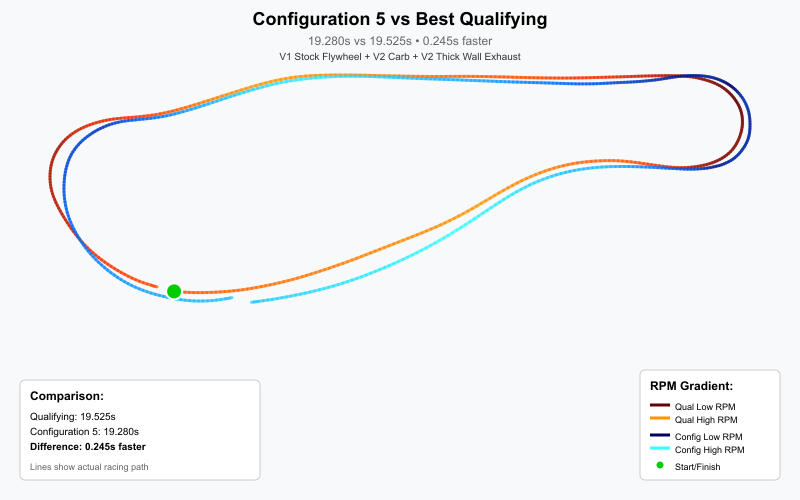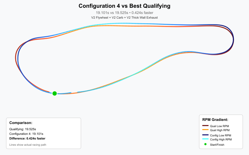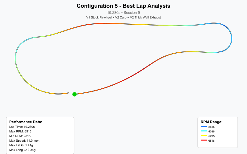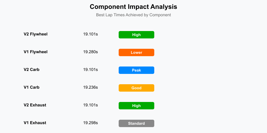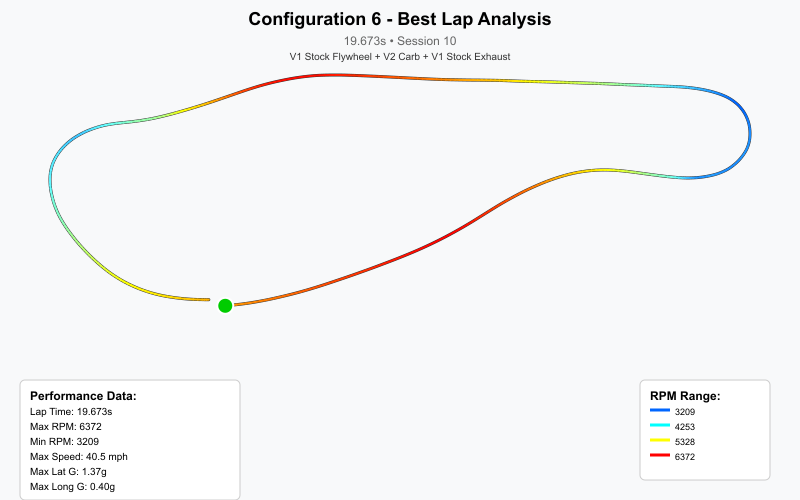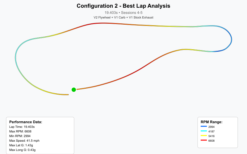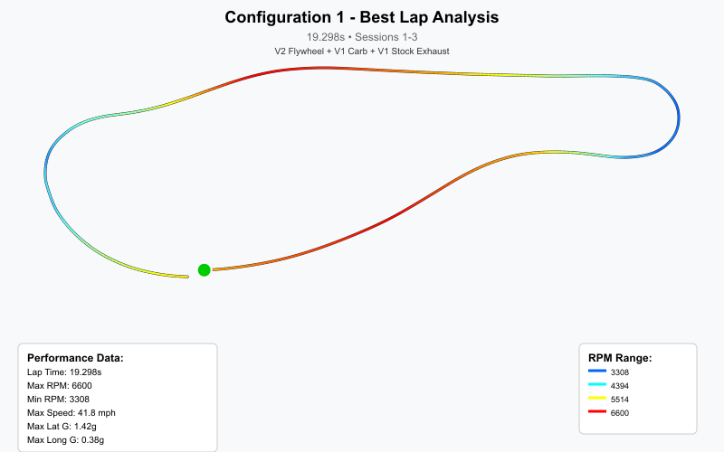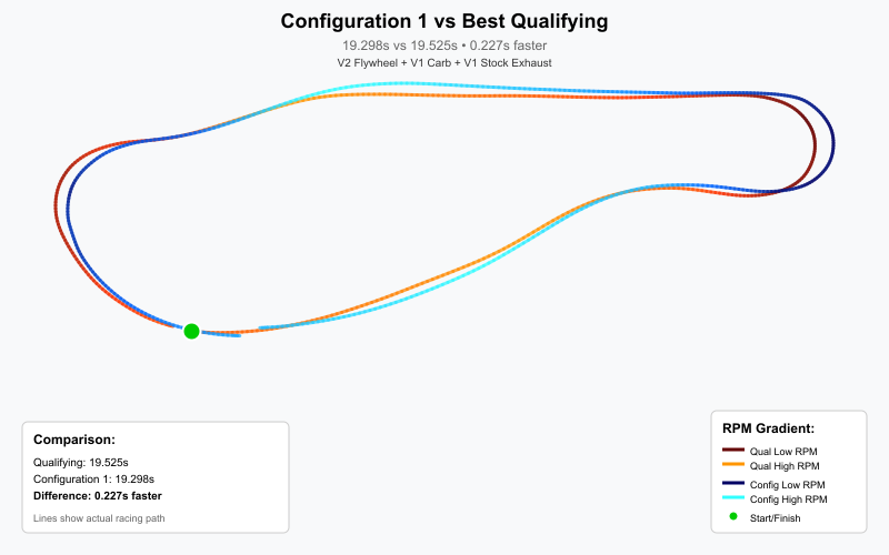 Config | Flywheel | Carburetor | Exhaust | Best Lap |