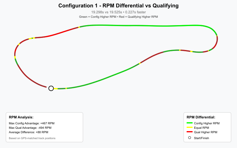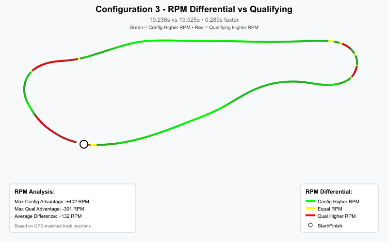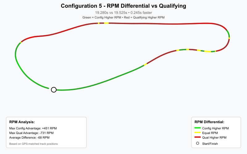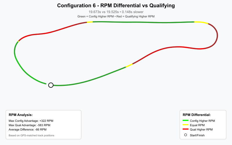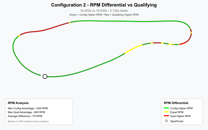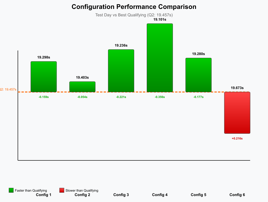 6 Configurations | 10 Sessions | Race 23 Q2 Baseline: 19.457s